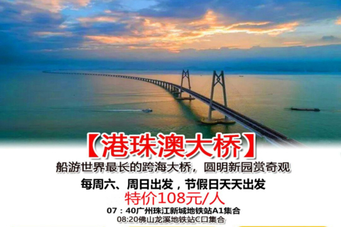 亮点1:港珠澳大桥@船游世界最长跨海大桥,“新的世界七大奇迹之一”,眺望澳门;