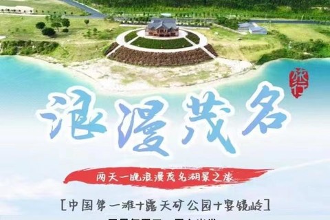 当你到达这里,会被眼前是一片宽阔清澈的湖水,湖的两岸树木葱茏、绿草茵茵相结合的自然美所迷惑。而在四年前,这里还是一个被废弃的油页岩大矿坑,垃圾遍地、污水横流,被当地人痛心地称为这座城市的“伤疤”。当人类与大自然相互配合,就能创造许多的奇迹。露天矿就是之一,其经过一系列的生态修复,变成现在茂名独一无二的美丽风景线,湖底岩层里丰富的矿物质在光的反射散射中呈现别致的颜色,彩霞满天时最为瑰丽,奇特岩石层让这里魅力无限,一不小心就踏上了神奇的“月球表面”