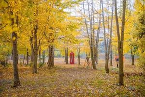 银杏园占地近百亩,行走其间,满目金黄,一棵棵银杏树像镀了黄金,随风飘落的杏叶更是铺满林间小道。