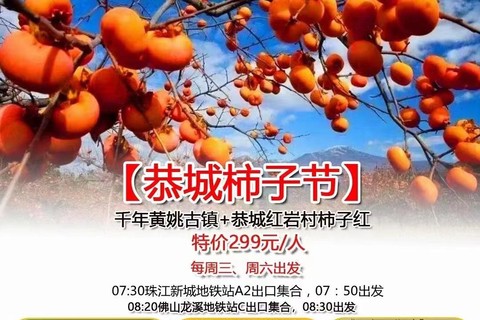(关于恭城柿子:如果遇到人流车流过多的情况,景区可能会进行交通管制,到时候需要自费10元坐接驳车进入柿子园!)