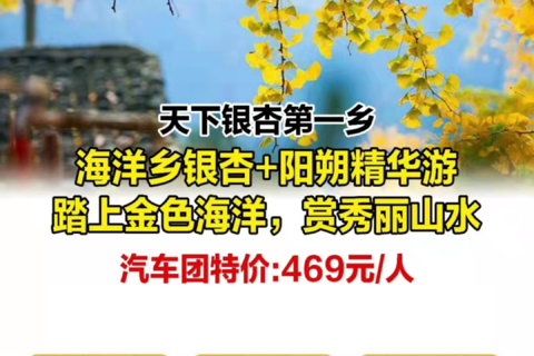 亮点1:天下银杏第一乡@海洋乡坐拥银杏树100多万棵,百年以上的野生银杏树就有17000多棵,是华南地区最大的银杏观赏地;