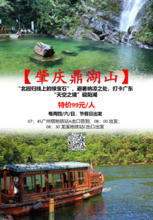 08:30 途经龙溪地铁站C出口上车(报名时请备注),出发前往肇庆。