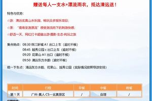 广东 广州 花都 08:30珠江新城A1出口08:45越秀公园c出口09:20花果山A1出口 09:50清远东方水韵