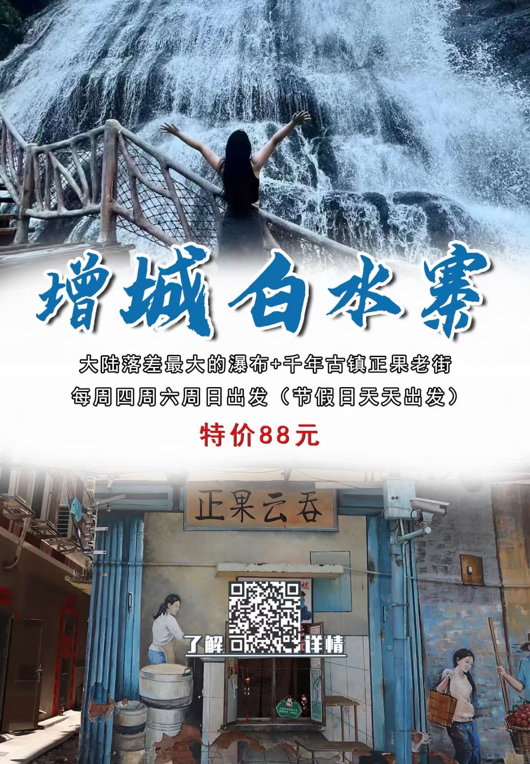 3)代订白水寨景区门票(团队优惠价55元/人)(领队车上收取费用)