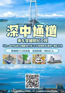 13:00 避开下午后的高峰,乘车前往深圳(车程约80分钟),途径大湾区“超级工程”【深中通道大桥】跨越伶仃洋,是粤港澳大湾区的核心通道,是集“桥、岛、隧、水下互通”于一体的世界级集群工程。深中通道西起中山大桥、东至西人工岛,全桥上跨珠江口伶仃洋海域,为两座城市重要桥梁;