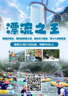 13:00 午餐后集合,乘车到黄腾峡漂流点(需要提前换好衣服漂流,记得提前准备一套替换衣服、毛巾放在领队处帮忙看管或自费存柜子里,活动结束后换洗使用。)