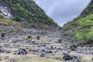 路途中,经过几个废弃村庄,有壮观的喀斯特石林,有高高的芒草掩盖得严严实实的小路。