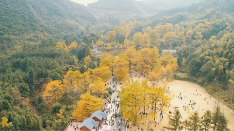 桐子坳景区旅游资源极为丰富,尤以银杏著称,素有“中国银杏第一村”的美称。它不像春日的妩媚,也不像夏日的狂野。桐子坳的秋天以它特有的美,令人流连,令人动容。置身于金色的大地中,看落叶纷纷,层林尽染,美哉!妙哉!