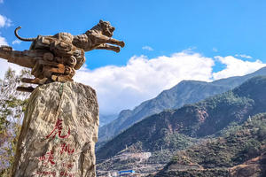 虎跳峡是中国最深的峡谷之一。虎跳峡有一种惊心动魄的美,在谷底有一块巨石孤峰突起,屹然独尊,江流与巨石相互搏击,山轰谷鸣。