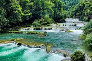 7:00早餐后乘车前往被联合国教科文组织誉为“地球上同纬度的最后一颗绿宝石”的黔南荔波(车程约4小时),中餐后乘车(10分钟)抵达国家AAAAA级风景区【小七孔】,游玩时间:不少于3小时;景点之间需换乘电瓶车(须自理电瓶车50元/人,走路无法游览)小七孔景区因一座建造于道光15年间(1836年)的小七孔石桥而得名;景区被称之为“超级盆景”,集山、水、洞、林、湖、瀑布等为一体,在长不到2公里的峡谷内,起迭着68级瀑布,顺贽而下,奔泻而去。