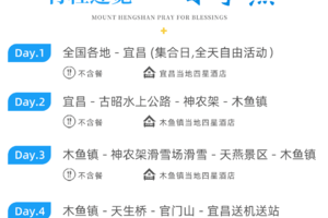 木鱼镇—神农架滑雪场滑雪—天燕景区(彩虹桥)—木鱼镇;