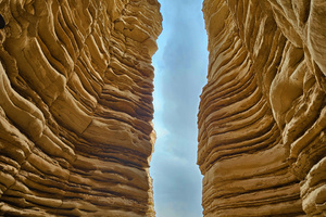 在鄯善县境内火焰山中段,有一个历史文化悠久、自然景观雄奇壮美的峡谷,这就是——吐峪沟大峡谷。吐峪沟大峡谷内怪石嶙峋,山间小溪斗折蛇行向南流去。大峡谷的东西两壁,素有“天然火墙”之称,温度最高可达60摄氏度。沟谷两岸山体五彩缤纷,且颜色随天气阴晴雨雾而变化无穷。吐峪沟大峡谷犹如一位身穿艾德莱丝绸的少女,千百年来一直身居在鄯善县境内的火焰山中段,一年四季,织阳光为裳,扯薄雾为纱。