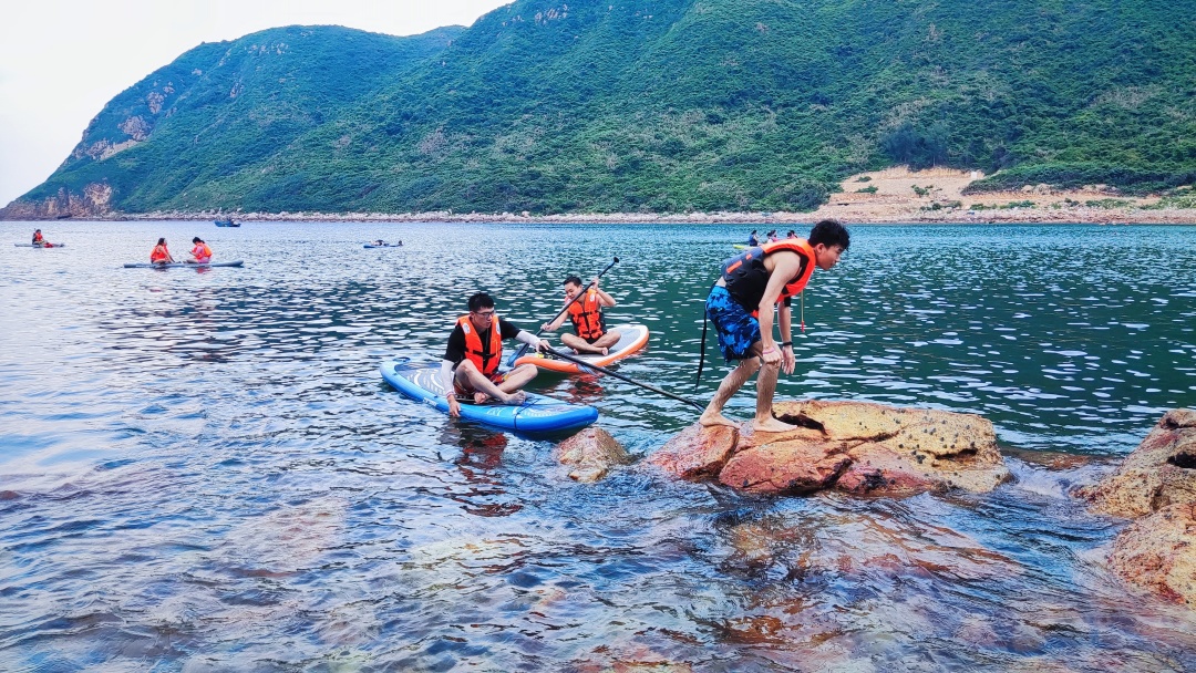14:30 领取浮潜和桨板工具,先听领队讲解浮潜\桨板活动的体验操作要领、注意事项,然后分批开始体验。(特别提醒:活动过程中全程须穿好救生衣)