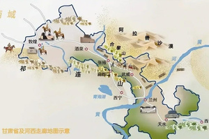 河西走廊东起乌鞘岭,西至玉门关,长1000多公里,最窄处仅数公里,西南为祁连山,东北为北山,两山相夹。自古以来就是中原至西域的咽喉要道,千百年来,无数的商队赶着骆驼来往于中原和西域,无数壮美场景在这里呈现,无数民族史诗在这里演绎,无数文明创造在这里融合;