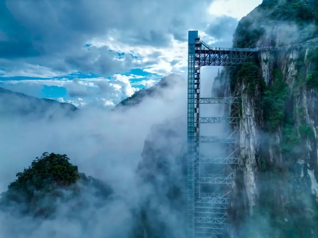 13:00 体验垂直观光电梯(电梯不含在大门票里面,建议乘坐,自理费用:单程40元/人),沿着悬空栈道一路经过金鞭大峡谷-东天门-七星崖-大天台,大天台号称“中南第一险”,运气好可以看到壮观的云海奇观;