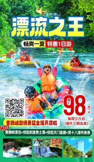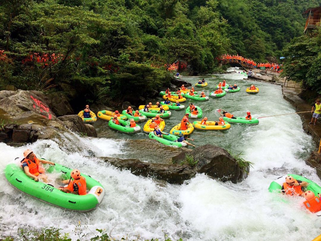天然猛士漂刺激好玩,河道长2.8公里,漂时70—80分钟,过程可体验悬崖转艇、猛龙穿洞、卷龙出寨、杜鹃映红、瀑布飞艇(最高落差12米)、青蛙跳潭等有惊无险的刺激和观赏两岸如画的山色。