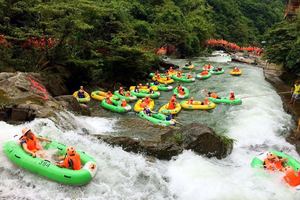 13:00 午餐后集合,乘车到黄腾峡漂流点(需要提前换好衣服漂流,记得提前准备一套替换衣服、毛巾放在领队处帮忙看管或自费存柜子里,活动结束后换洗使用。)
