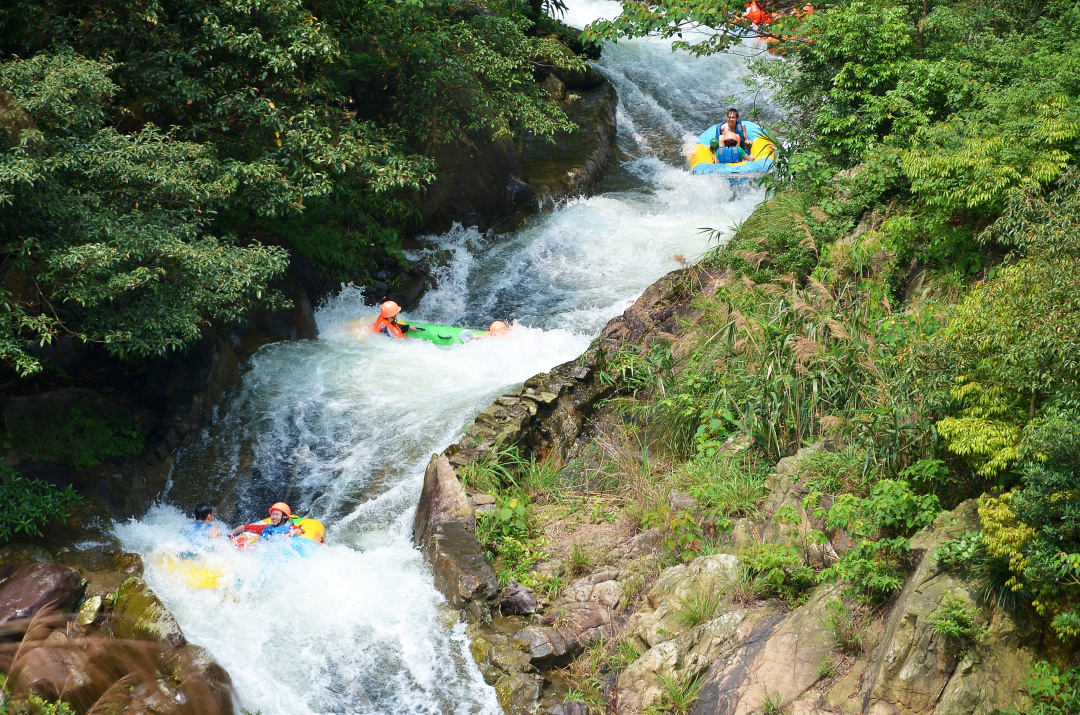 观景勇士漂河道长2公里,漂时约60-70分钟,过程将会享受到翡翠三叠、神龙赐水、银珠落玉盘、曲水回环、群龙戏水、双龙出海等或动感好玩或景色怡人的乐趣。