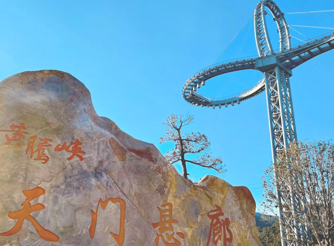 天门悬廊整体由山体伸出直线长达368米,外侧单柱悬挑的环形悬廊长度既达168米,是美国科罗拉多大峡谷的8倍。