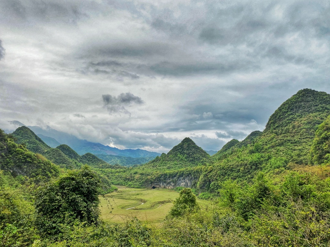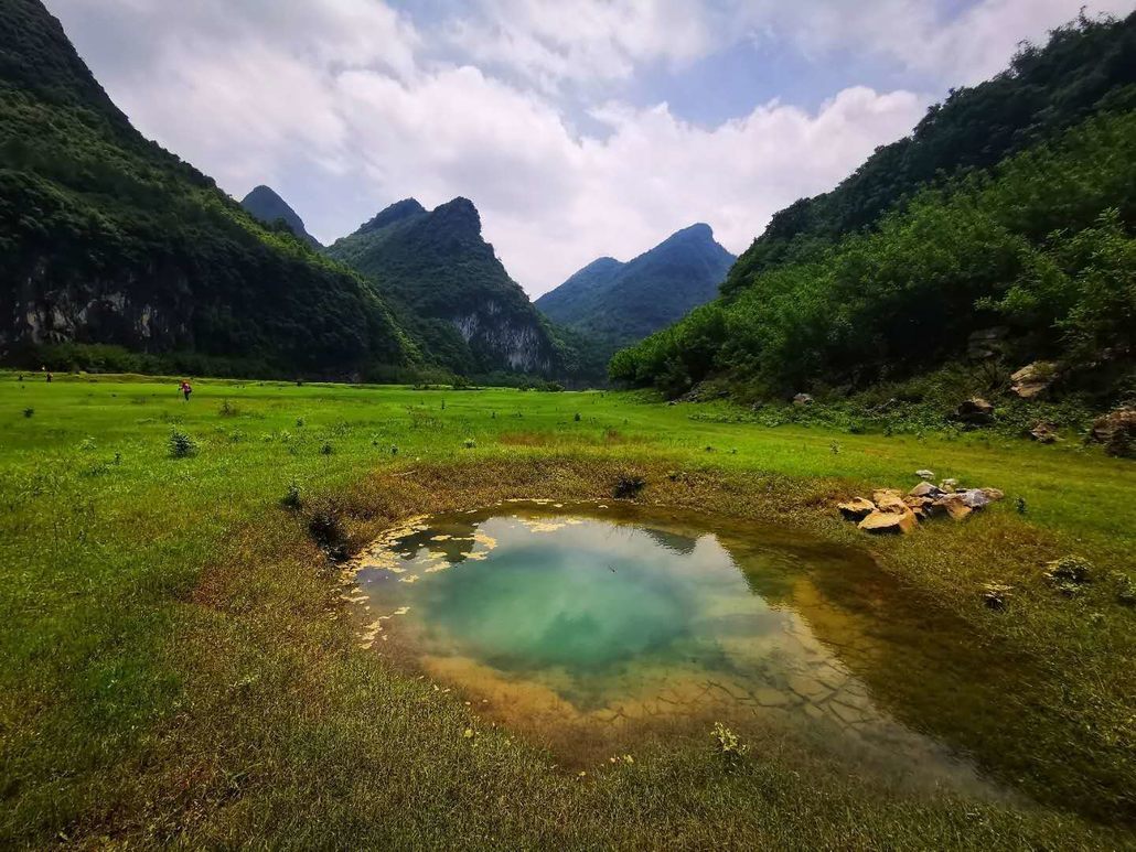 它丝带般在喀斯特峰林之间缠绕,还能欣赏到罕见的特大天坑-饭甑洞天坑,风景秀丽而原始。