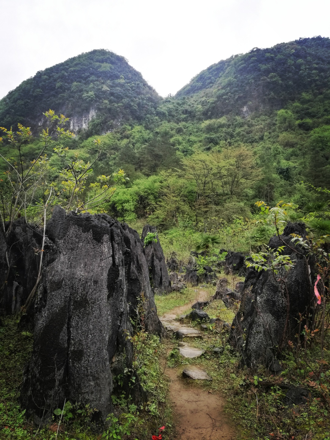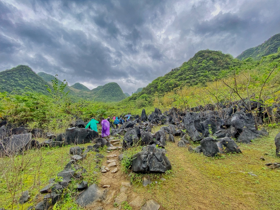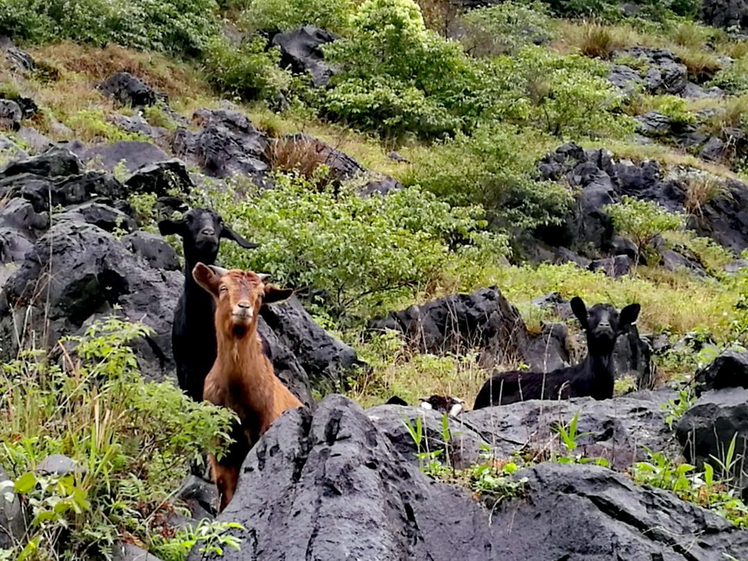 路途中,经过几个废弃村庄,有壮观的喀斯特石林,有高高的芒草掩盖得严严实实的小路。