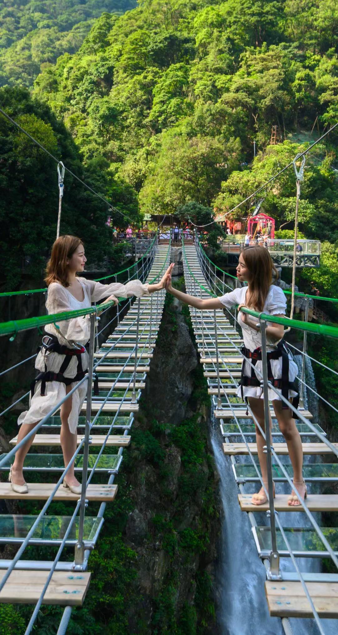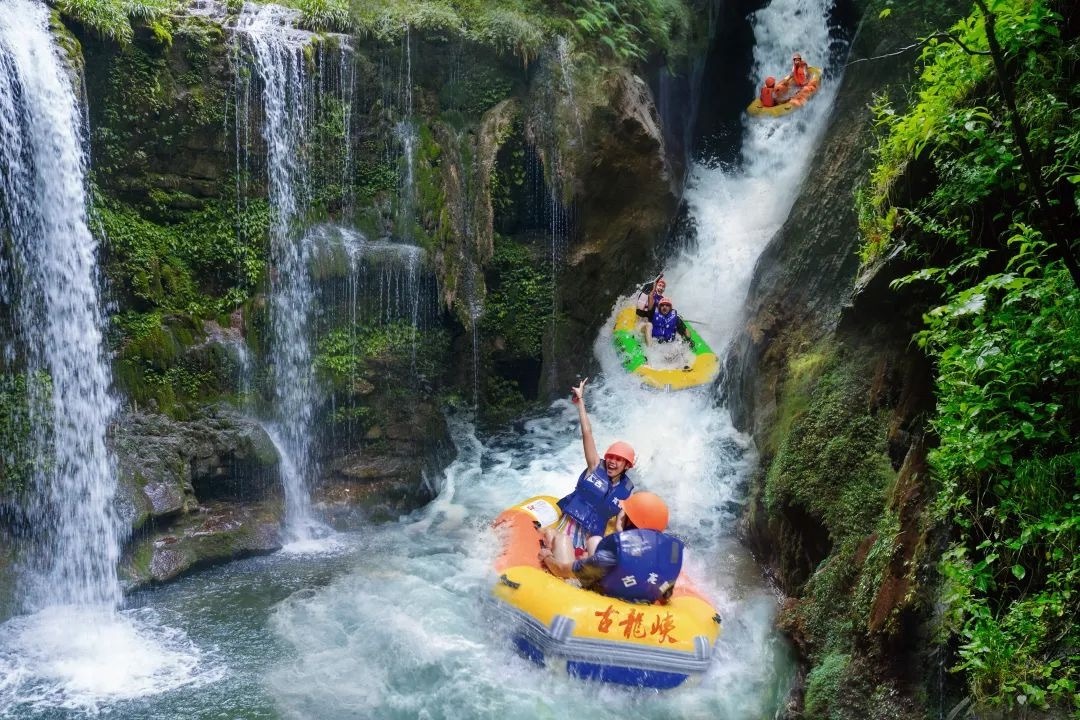13:00 前往【古龙峡景区】更换好衣服,寄存好物品,准备开漂!古龙峡全程漂流全长6063米,落差高达378米,一路激流勇进,高潮迭起。手上有瓢,就是嚣张,疯狂打水仗吧!尽情放纵,感受夏日的冰凉!不参加漂流的小伙伴,可以美拍云天玻霸,挑战6大网红玻璃项目等项目,惊险刺激!
