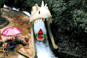 高达26.8米的巨型猩猩雕塑是古龙峡的森林之魂