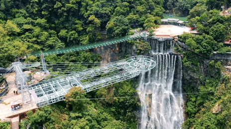巨型UFO造型的玻璃平台位于大瀑布的顶端
