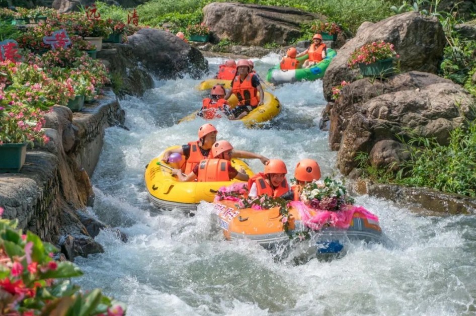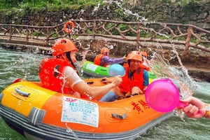 13:00 前往【黄腾峡景区】更换好衣服,寄存好物品,准备开漂!感受澎湃刺激的漂流,在自然生态的环境中享受一流水质的无穷魅力:漂过一山又一山,赏尽一景又一景;人在水中漂,如在画中游~