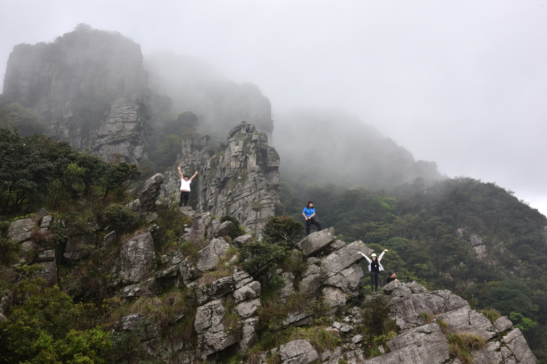 茶岩顶并不是什么名山大川,但也非默默无闻,在广东驴友圈内,这是一个极好的地方,没有广东户外毕业考试之称的船底顶的难度,风景却毫不逊色。(图为领队实拍)