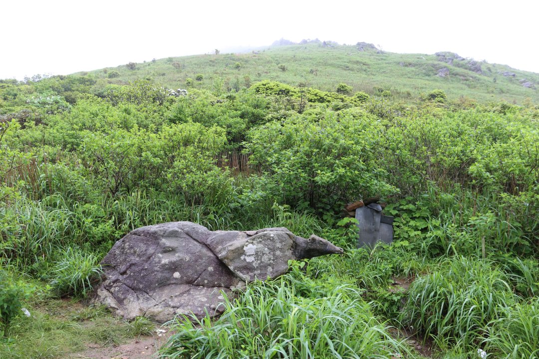 √主峰有一巨石,头枕在江西,身躯在广东,因形似黄牛而得名。