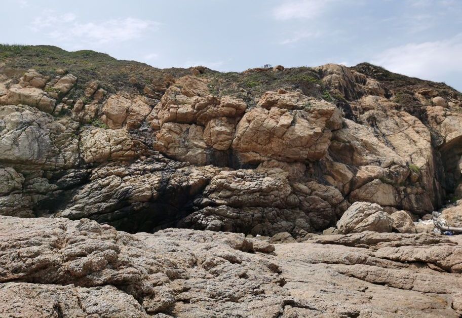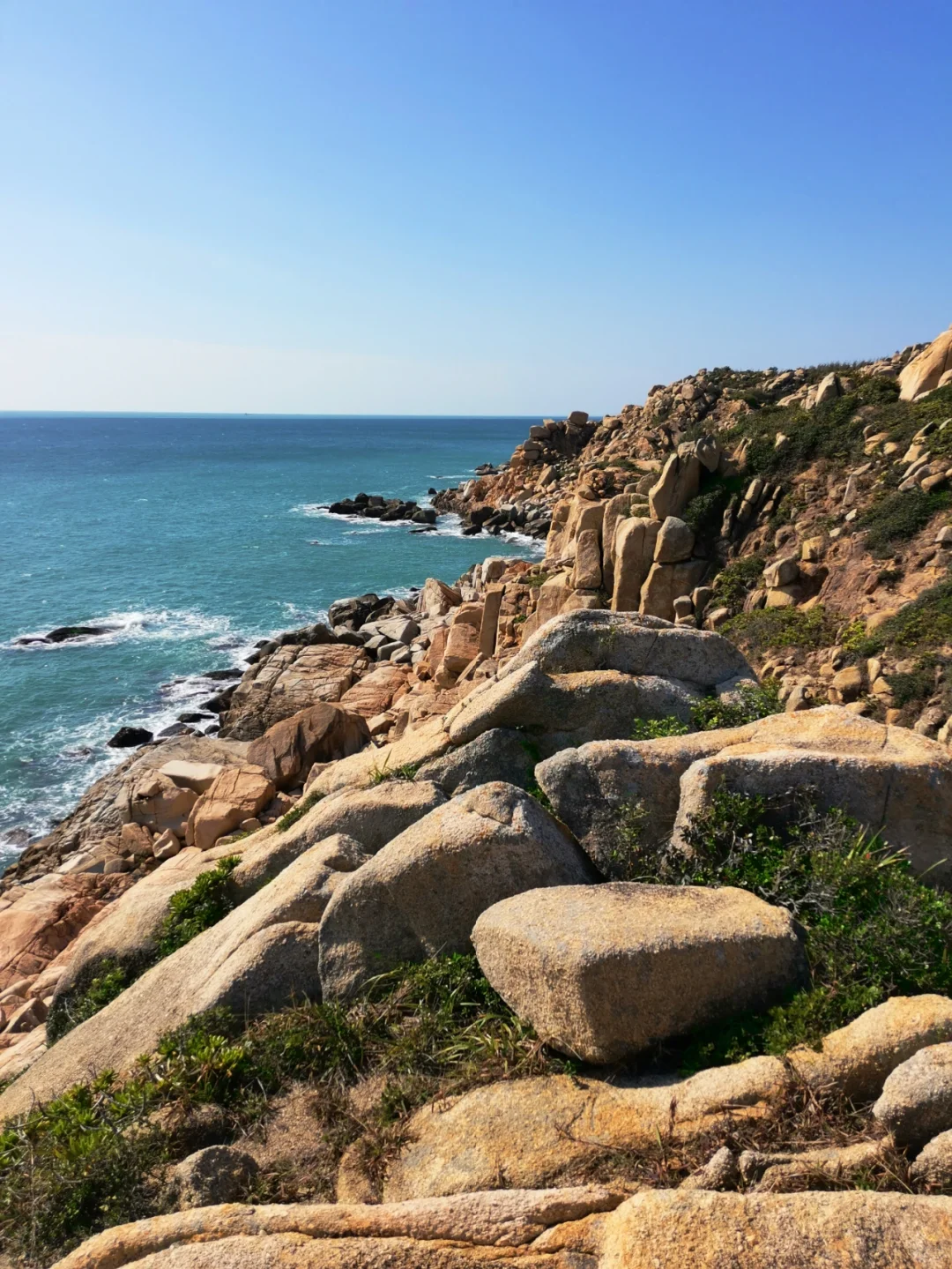 继续翻过海崖能看到一片彩石滩