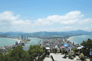 双月湾,地处北纬22°黄金海岸带,拥有全球唯一双湾三海世界奇观。
