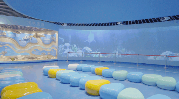 有栩栩如生的海龟标本配上大型投影
