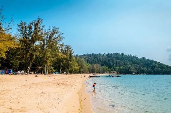 这里沙滩绿树成荫