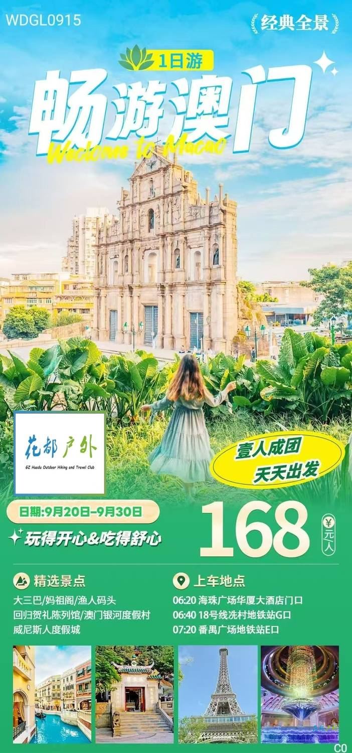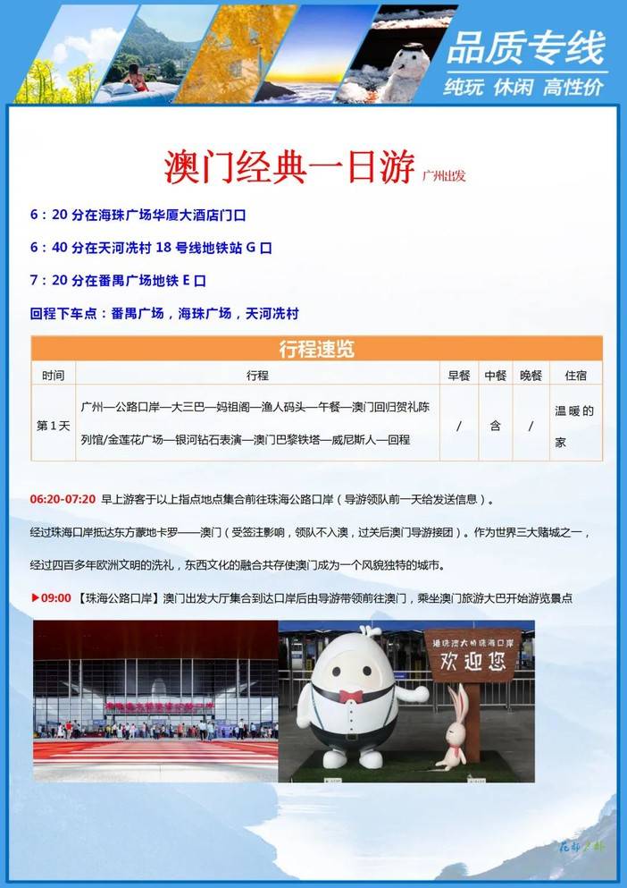 花都集合去程集合时间地点:(花都建议提前住一晚珠海口岸) |