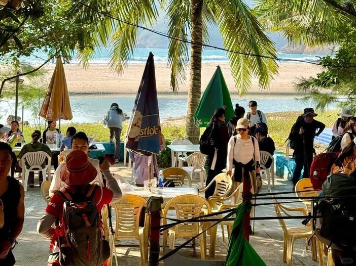 15:00 翻过西湾山达到西湾沙滩,稍事休息,在士多店点上一杯饮料欣赏海景