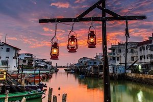 延续至今。棚屋建筑在竖立于水面的木柱之上,户户相连,鳞次栉比。棚屋区由桥和水上木板走廊连接在一起,形成了纵横交错的水上人家。居住于此的客家人,以捕鱼为生,过着宁谧质朴的水乡生活。
