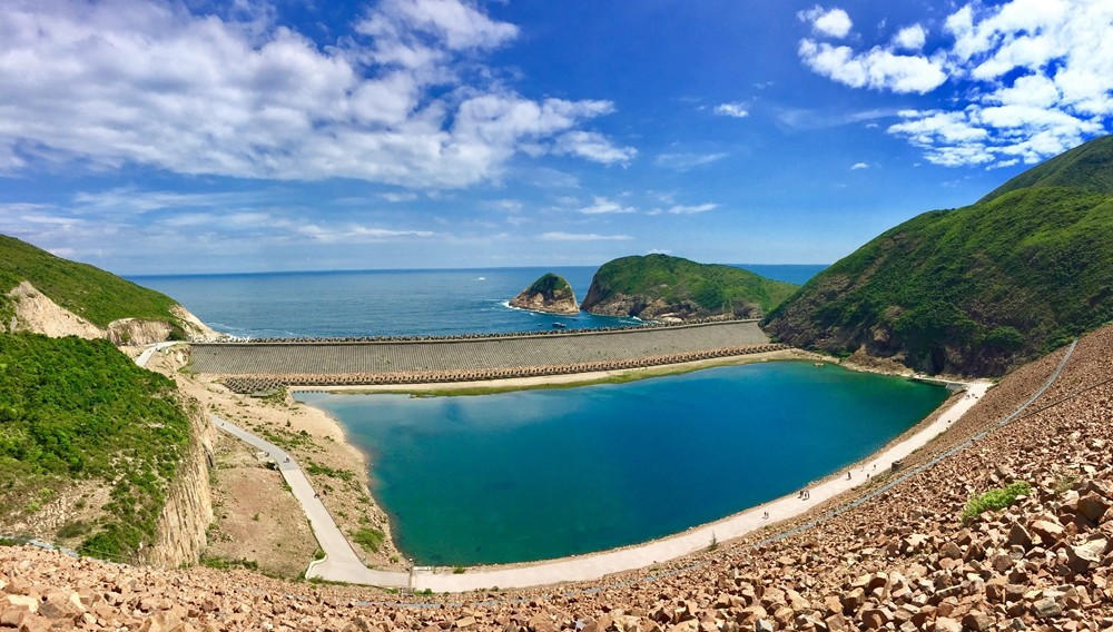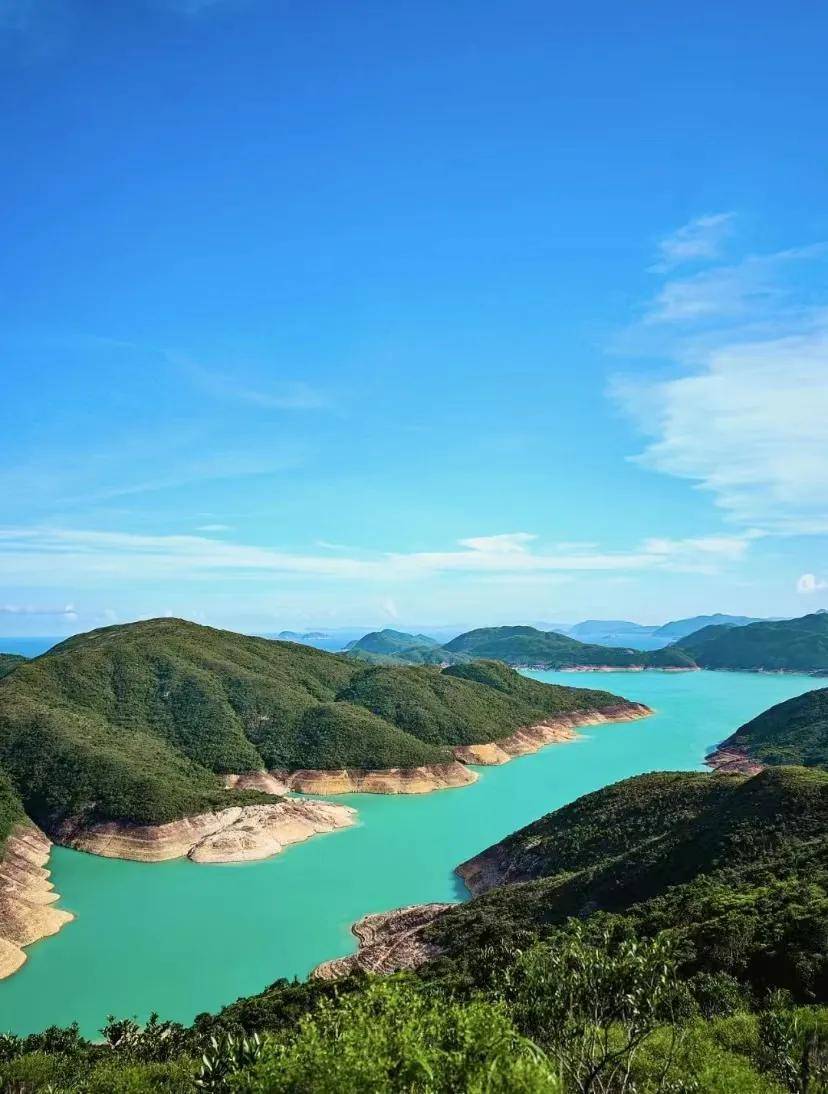 晴天下的万宜水库色彩活泼得让人惊艳,水色湛蓝,犹似天然湖泊,遇上天朗气清的日子,还可以远眺蚺蛇尖。