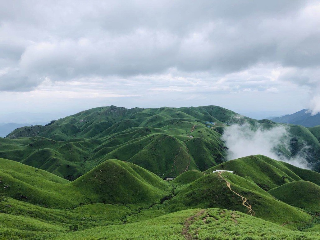 武功山烟雾迷蒙,充满了神秘和浪漫的气息。从金顶到发云界,全是高山草甸,碧波荡漾,而且延绵不绝,满眼的绿色,像是来到了内蒙古大草原,让人有纵马驰骋的冲动,感觉自己好像进入了天堂;武功山连绵不断的山坡,会把人爬奔溃。