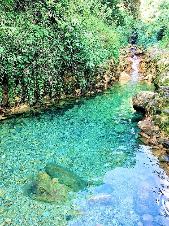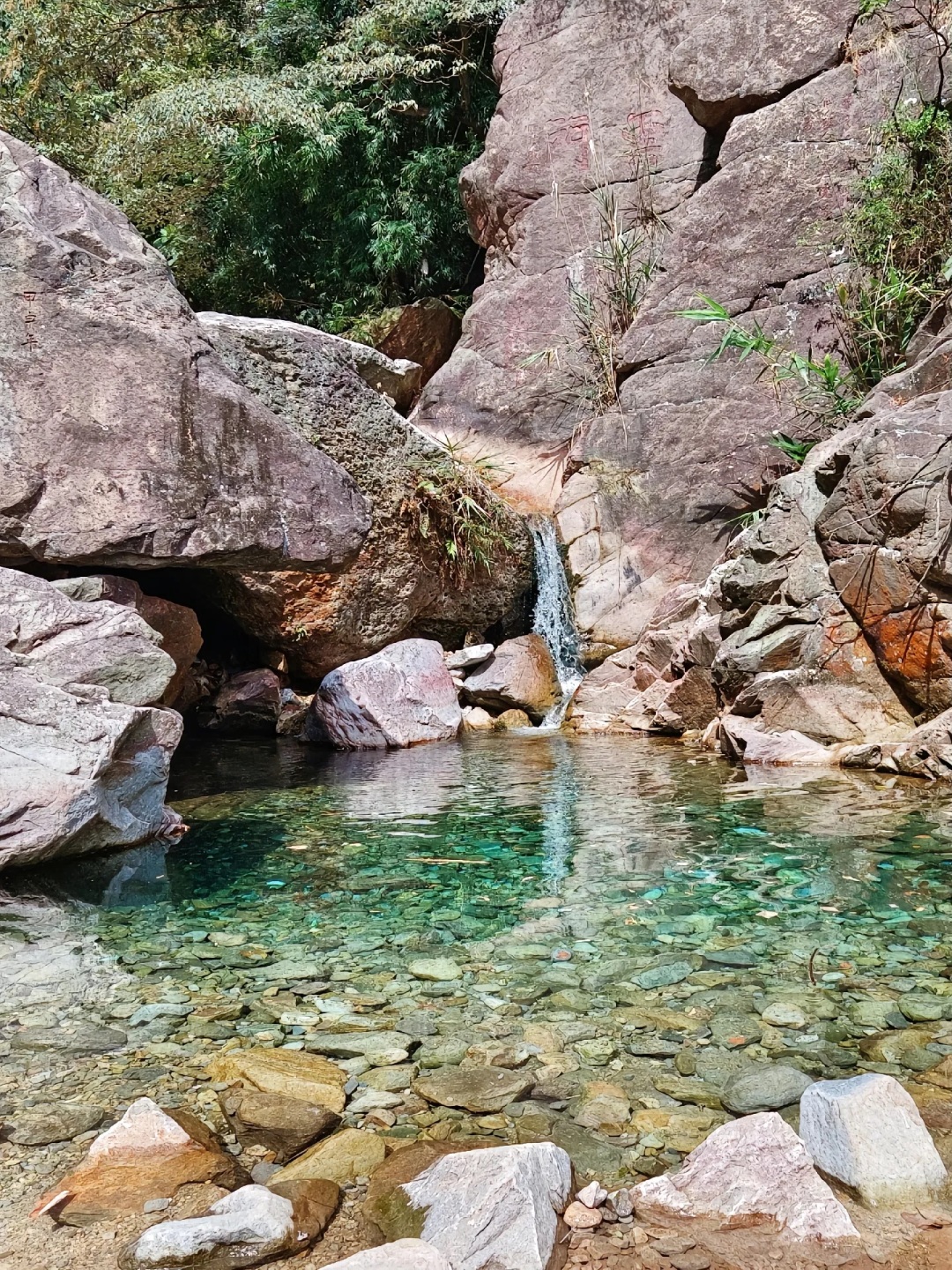 14:20 到达太和古洞,景区后跟随领队徒步溯溪,栈道绿树成荫,途中遇到各种潭子,往返约3公里(也可以选择不徒步直接去游泳池玩或者徒步累了直接寻一个水潭游玩),徒步后回到大门口处的天然泳池,尽情玩耍吧;