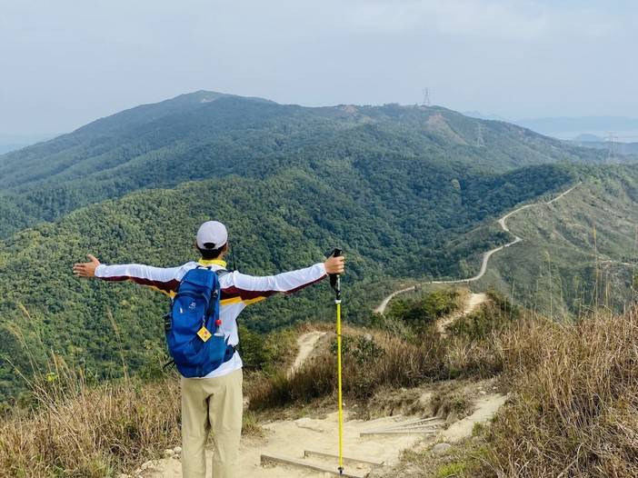 08:30 领队带领热身后开始徒步,今天挑战6、7、8段,也是香港的一条越野跑拉练线路之一的“针草帽”,也是较为辛苦