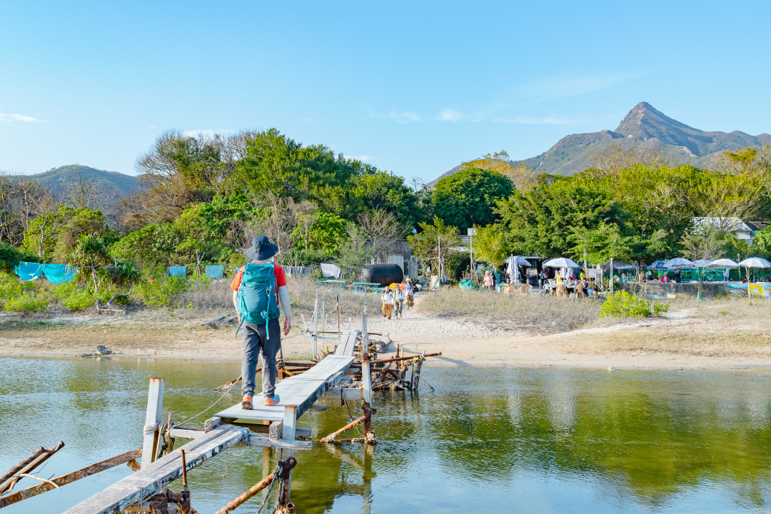眼前有一座简陋得几乎摇摇欲坠的木板桥,几乎就是咸田湾独有的标志性建筑物了。可千万别小看这座搭建在沙滩小河涌上的独木桥,她在香港可是家喻户晓,十分有名呢