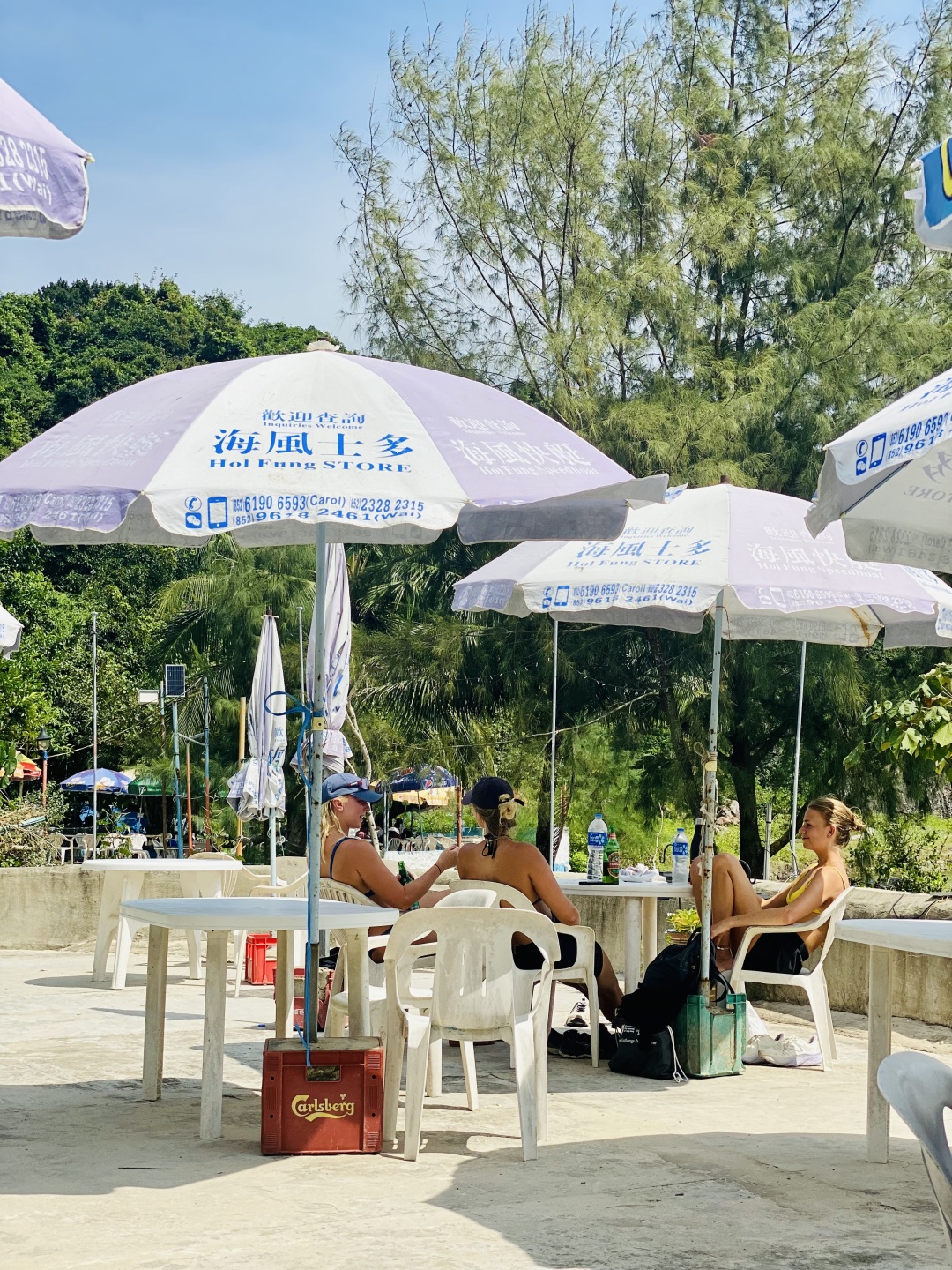 12:30 翻山越岭,来到了咸田湾沙滩,我们在这里休息午餐。旁边有两家士多店,可在这里自行点餐或者补给,小店可以支持微信和支付宝付款,不过汇率是一比一喔!