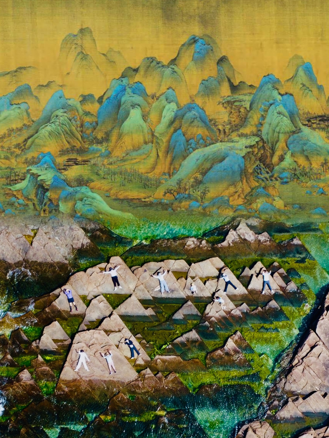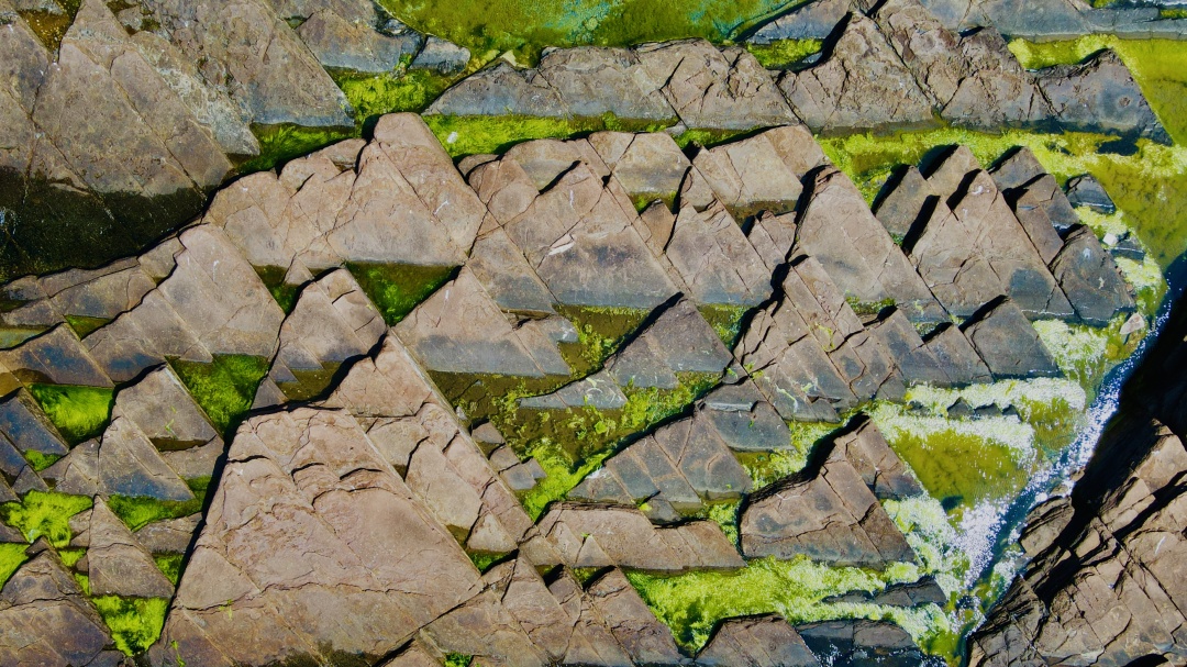 因其独特的自然景观而被誉为现实版的“千里江山图”。这一美誉来源于岛上一种特殊的自然现象,尤其是在退潮时和通过航拍视角观察,东平洲的页岩地貌与海水相互映衬,形成了类似中国古典名画《千里江山图》的画面效果。