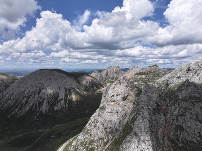 早餐之后整装出发,沿景区的容闹沟向北徒步。先沿着水泥公走到峡谷口,峡谷口形如一堵石门,称为“纳加石门”,俗称“鬼门关“。 进入峡谷后沿着宽阔的牧道向前,虽然是土路,但是道路痕迹明显,两旁都是陡峭的石壁,没有任何岔路, 一路上坡。大约2小时左右,抵达海拔3840米的涅甘达娃神山脚下。然后继续向前抵达一片平缓开阔的峡谷,名为玛尔松多,海拔3560米,在这里休息午餐。 午餐后,沿着山谷牧道继续往前,经过扎尕那石林,往东继续行走,后面海拔逐渐升高,沿着溪谷边明显的牧道,一路上上下下,翻越光盖山、交布克等四个垭口后,然后一路向下,大约一个半小时抵达一大片平整开阔的草地露营。旁边有溪流通过,是理想的营地。因为大山山后的峡谷称作“冬才峡谷”,故有人称这里为冬才营地。