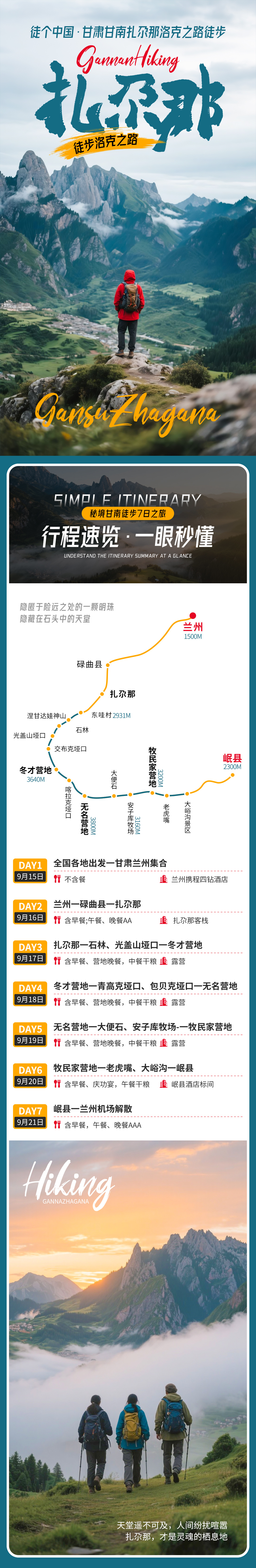 1.交通:兰州往返根据人数选择合适车型。(其中包含①迭部-扎尕那中转车;②大峪沟景区-景区大门中转车;③大峪沟-岷县中转车;)以上交通均为一人一座。