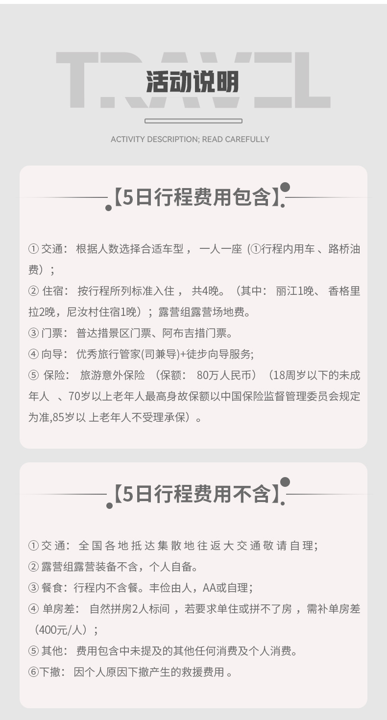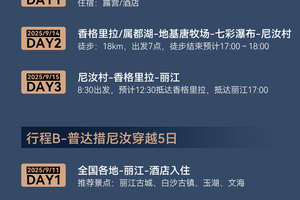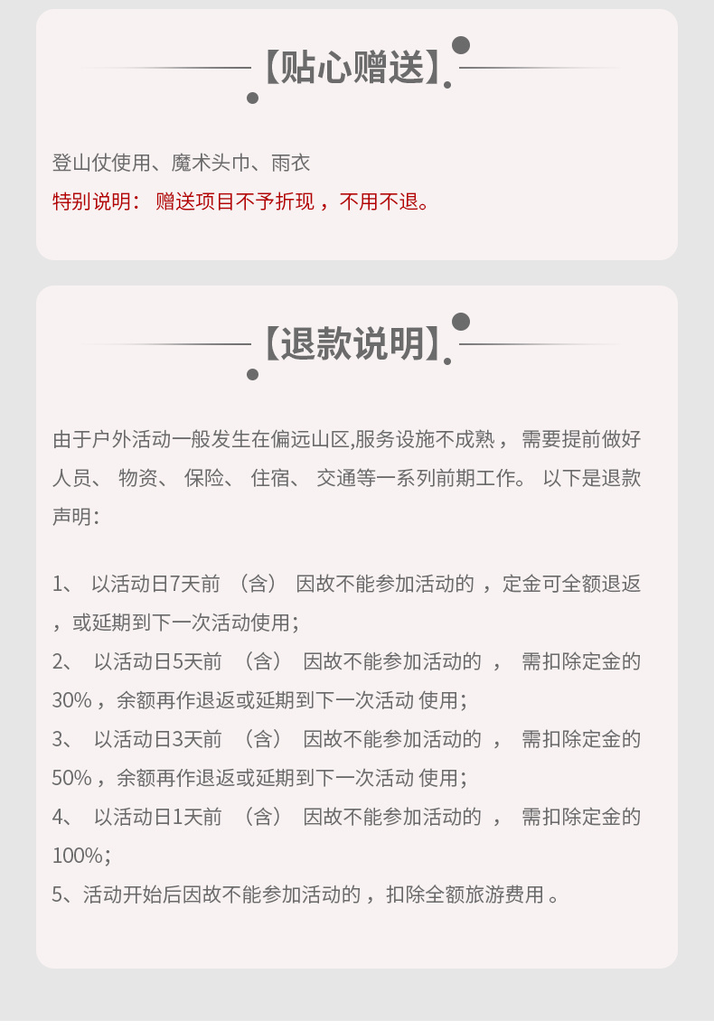 C套餐:2280元/人(5日行程)(含定制速干POLO衫、碳纤维登山杖2条)