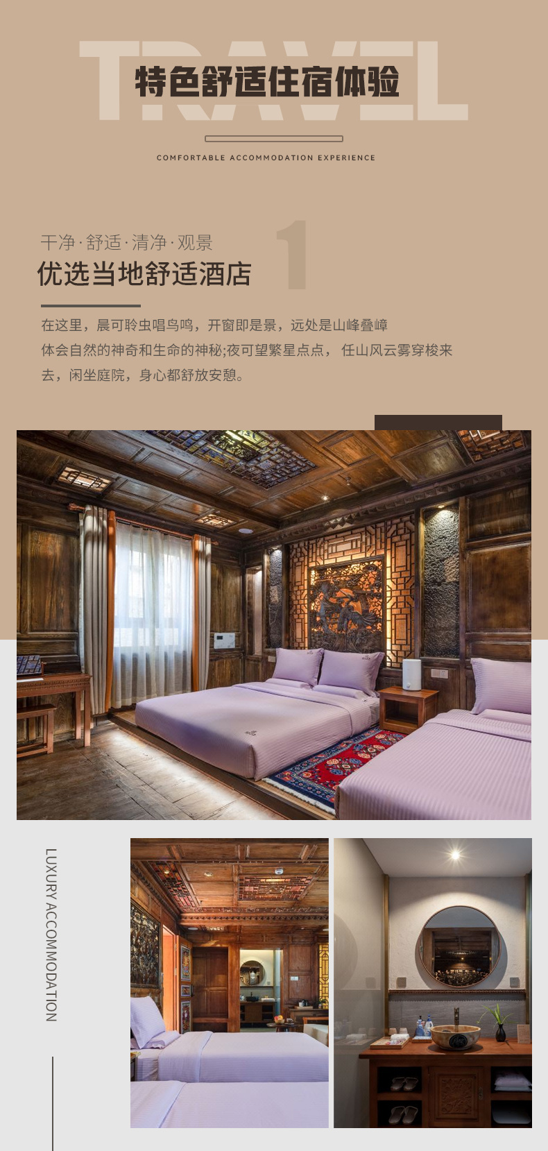 2、住宿:按行程所列标准入住,共4晚,默认拼房。(详见后面活动说明);