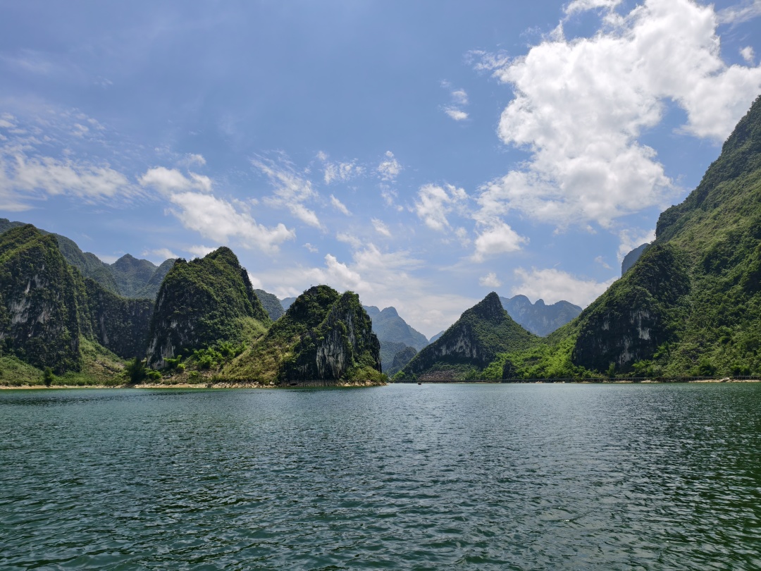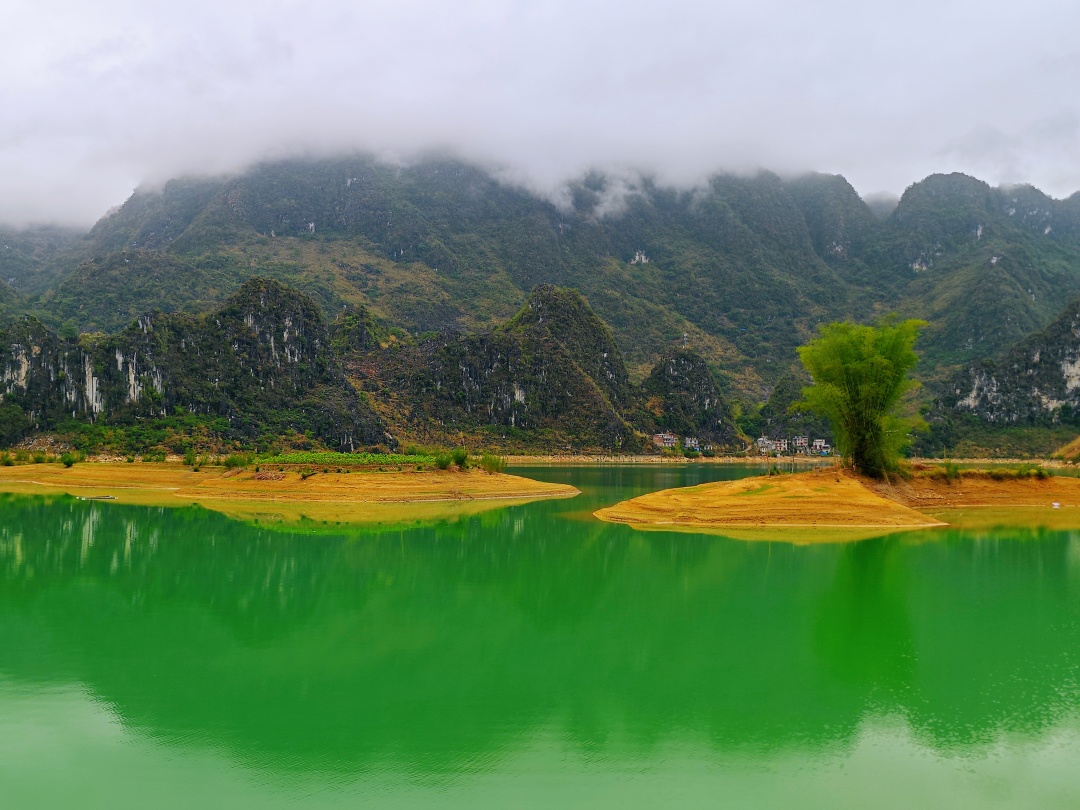 浩坤湖是凌云地区最大的一片水面,两岸山奇崖秀,丰水期里湖面宽阔,水质清澈。岛屿交错,水天一色。景区内还有几十座山峰紧紧夹携着一湖碧水,令人陶醉